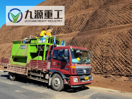 噴播機(jī)是應(yīng)用于邊坡綠化的專(zhuān)業(yè)設(shè)備,通過(guò)本設(shè)備將土壤基質(zhì)、綠化草籽、保水劑、黏合劑、肥料等,在噴播機(jī)攪拌罐中與水混合成膠狀的漿液,用泥漿泵將其噴播于坡面上。由于漿液中含有保水材料、黏合材料、各種養(yǎng)分,在保證了植物生長(zhǎng)所需的水和其它營(yíng)養(yǎng)物質(zhì)來(lái)源的同時(shí)有效防止雨水沖刷對(duì)噴播材料的破壞,故而植物能夠健康、迅速地成長(zhǎng)。