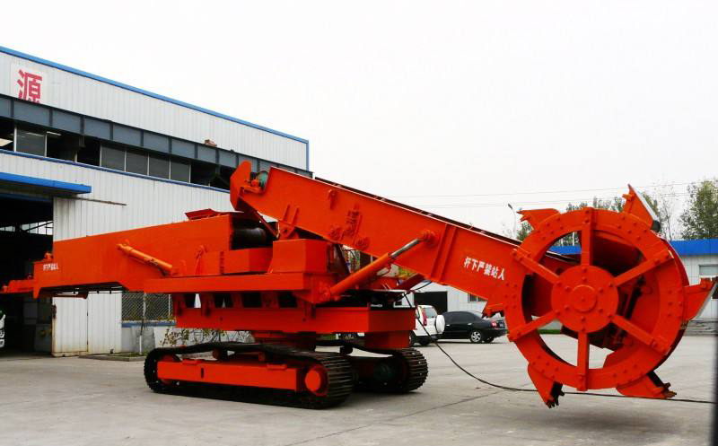 斗輪取料機,是指一種用于大型干散貨堆場的既能堆料又能取料的連續(xù)輸送的高效裝卸機械。由可俯仰和水平擺動的膠帶輸送臂及其前端的斗輪、機架、運行機構(gòu)組成,膠帶可雙向運行,取料時由斗輪取料經(jīng)輸送臂送出,堆料時則由主輸送機運來的貨物經(jīng)由輸送臂投向堆場。